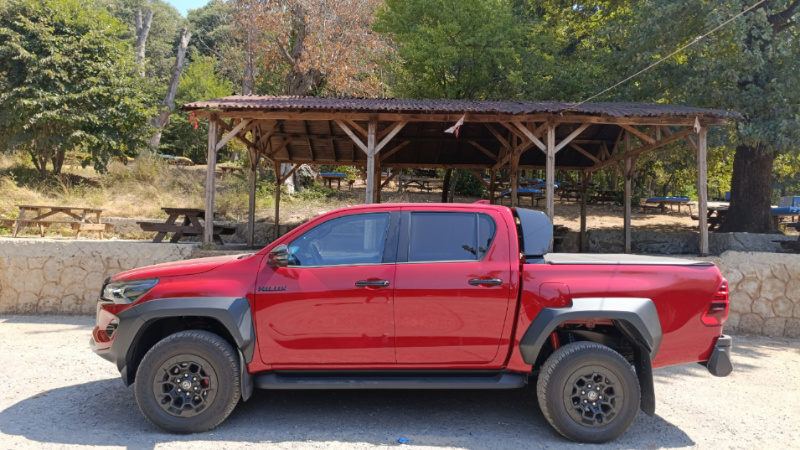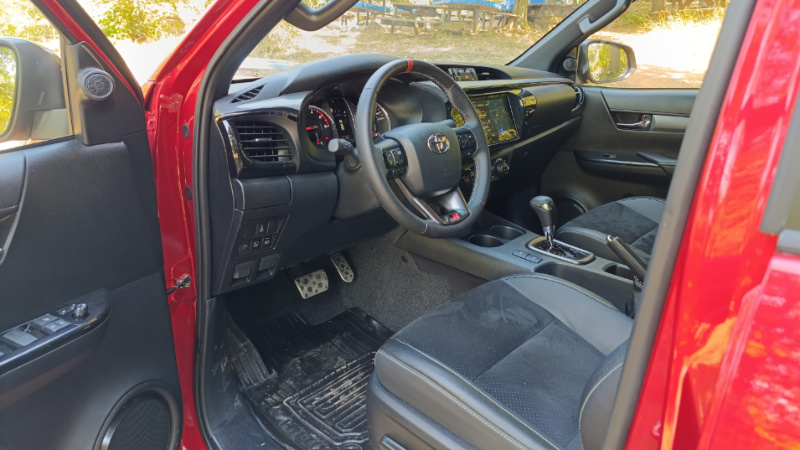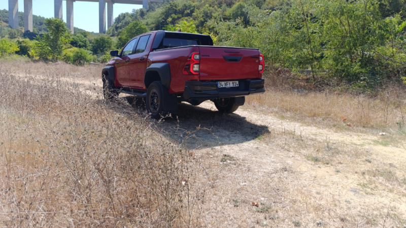 Yol üzerinde süspansiyon hâlâ sert ama GR SPORT ayarları sayesinde darbeleri daha kontrollü sönümlüyor. Kabin yalıtımı da pick-up standartlarında oldukça iyi.